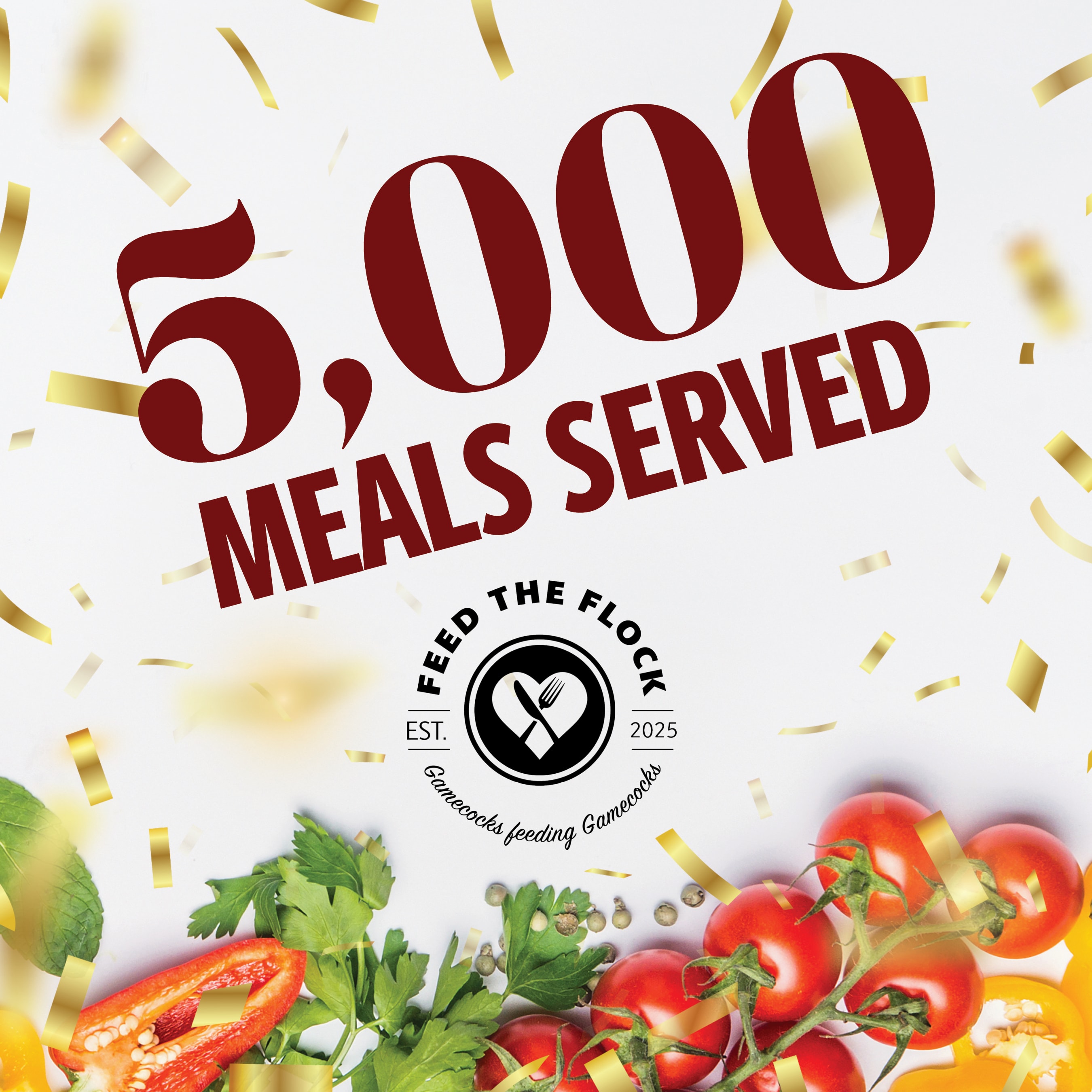 In just two short months, Feed the Flock has provided more than 5,000 meals to Gamecocks. Momentum for alleviating food insecurity on campus is strong and this is only the beginning—we need your support to amplify the impact and ensure more support is available. With your gift today, we can ensure no Gamecock goes hungry. Join us in feeding the flock.